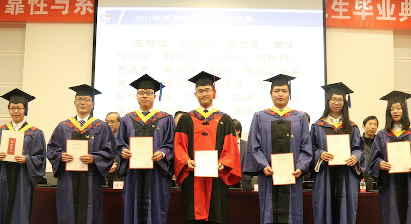 3月27日下午14:00,2017届研究生毕业典礼在新主楼第二报告厅顺利举行。经理王自力教授、党委书记赵廷弟教授、学位委员会主席康锐教授、副经理曾声奎教授、刘斌教授、各系中心领导老师、教师代表、辅导员、部分员工家长以及学院全体2017届毕业研究生应邀参加典礼。