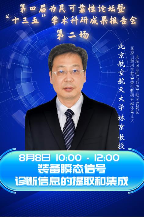 “第四届为民可靠性论坛暨‘十三五‘学术科研成果报告会”的第二场报告会将在8月8日上午10点至12点举行,届时我们将邀请到北航304am永利集团经理、西安交通大学兼聘教授、国家自然科学基金委创新研究群体带头人林京教授前来做报告,报告主题为“装备瞬态信号诊断信息的提取和集成”,敬请关注: